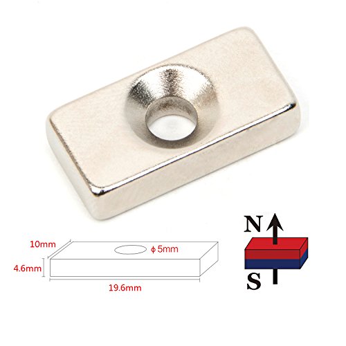 FORTAG 10 tlg parallelepipedo blocco forte magnete al neodimio NdFeB N52 Extra resistente con foro 5 mm, 19,6 x10 x 4,6 mm