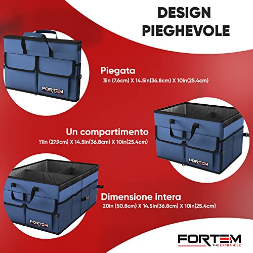 FORTEM Organizer Bagagliaio Auto, Organizer Auto e SUV Multi Scomparto Pieghevole, Organizer Auto Bagagliaio, Fondo Antiscivolo, Cinghie Regolabili, Coperchio Pieghevole (Blu - Grande)