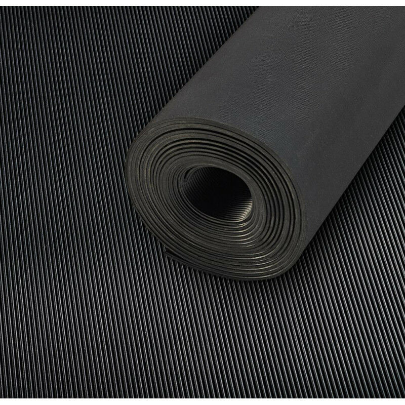 Materassino a coste - Senza inserto - Buona resistenza allo scivolamento - Superficie a coste - Parte inferiore con motivi in tessuto - Possibilità di emissione di vapori - Aumenta la sicurezza nelle aree di lavoro - Protegge le superfici, come i banchi di lavoro o le postazioni di lavoro delle macchine, da eventuali danni - Adatto anche per il rivestimento di container e aree di carico - Utilizzabile nell'industria. Artigianato. Edilizia. Agricoltura. Commercio, ecc. - Resistenza alla trazione: 3,0 MPa - Allungamento a rottura: 200% - Peso specifico: 1,50 g/cm³ (+/- 0,05 g/cm³) - Durezza: 70° Shore A (+/- 5°Shore) - Materiale: SBR/NR - Resistenza alla temperatura: da -25 °C a +70 °C - Colore: nero