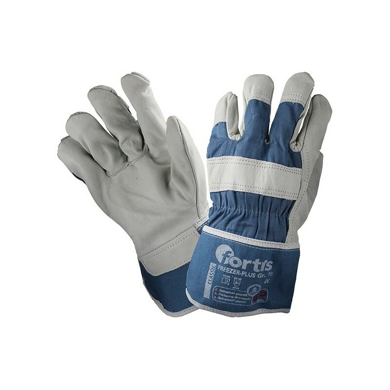 Guanto invernale>> freezer Plus < Guanto universale invernale Comfort elevato Per ambienti interni ed esterni PH pelle neutra Analisi degli inquinanti aree di applicazione: industria automobilistica, magazzino e trasporti, silvicoltura e agricoltura, orticoltura, attività ruvide materiale: pelle di manzo, cuciture doppie, fodera completa Molton, tela stulpe lunghezza: 280 mm spessore: 1,2 - 1,3 mm colore: blu e bianco