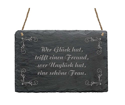 Chi fortuna trifft ha un amico, chi ha incidente, una bella signora - Targa in ardesia con motivo decorazione - decorazione scudo