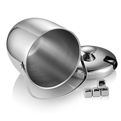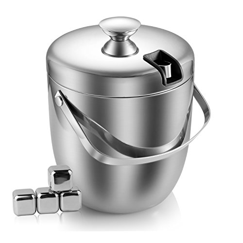 Fortune Candy (TM) a doppia parete in acciaio inox secchiello per il ghiaccio con pinza e cubetti di ghiaccio, anti impronte, 3 litri/0,8 galloni