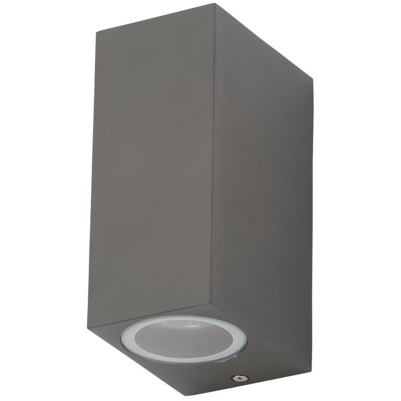 Forum Fleet Lampada da Parete per Esterno Up Down a 2 Luci Grigio Antracite IP44 | Finitura: Grigio Antracite | Materiale: alluminio e vetro | Grado di protezione IP: IP44 | Altezza: 15 cm | Larghezza: 7 cm | Profondità: 9 cm | Tipo di lampada: GU10 | N. di lampade: 2 | Peso: 0,566 kg | Potenza (massima): 35 W