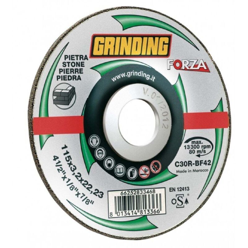 Grinding Forza disco per marmo 230 x 3,2. Caratteristiche: - Disco per marmo. - A centro depresso. - Materiale: Abrasivo al carburo di silicio. - Adatto a: Per il taglio, l'aggiustamento e la posa in opera di marmi, pietre e materiali da costruzione in genere e ghisa. - Foro: 22,2 mm. - Spessore: 3,2 mm. - Diametro: 230 mm.