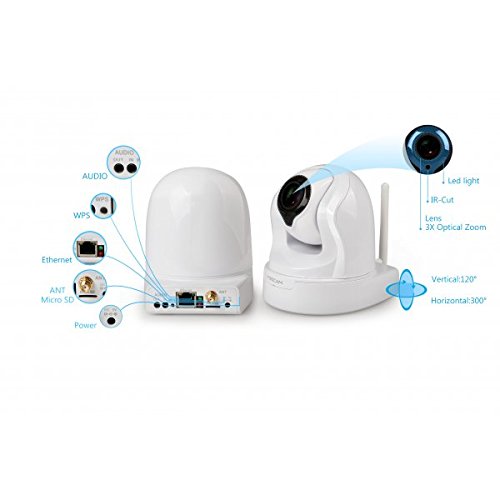 FOSCAM FI9826P V2 - Telecamera IP Wi-Fi HD 960p (1.3 Megapixel) motorizzata PTZ, Zoom Ottico 3X, Visione Notturna 15m, Motion Detection con E-Mail Alert, ONVIF, P2P Plug & Play