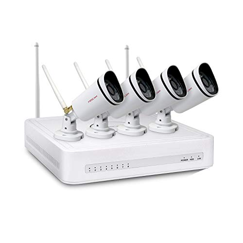 Foscam FN3104W-B4-1T Videosorveglianza WiFi 4 Telecamere Ip Wireless HD 720P E Hard Disk da 1 TB, 12 V, Bianco, Set da 5 pezzi