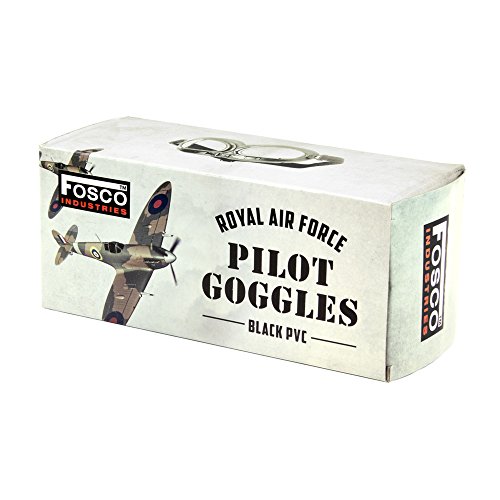 Fosco Industries Occhiali da Pilota Aviatore RAF Inglesi Replica WWII cromati o neri vintage (Nero)