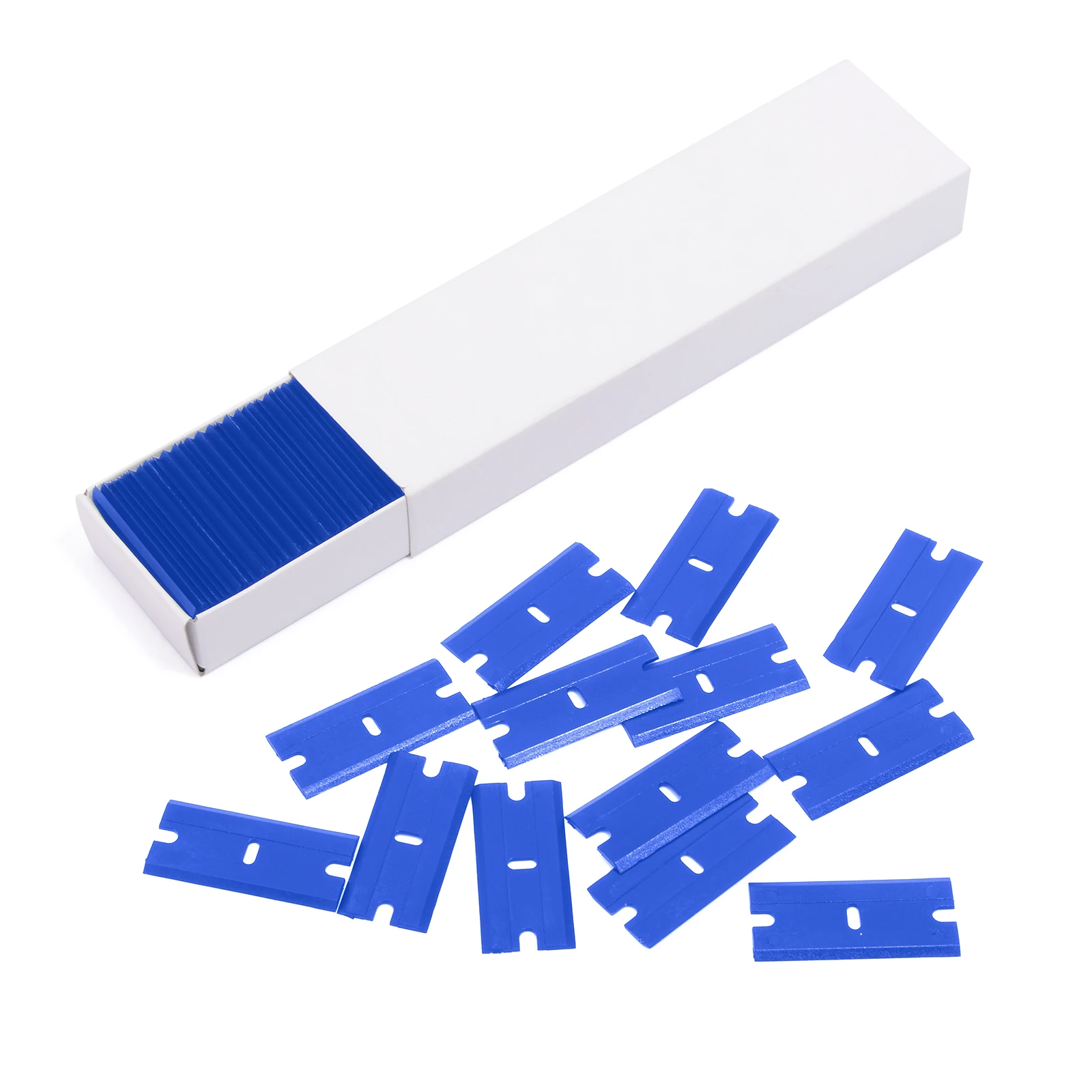 FOSHIO 100PCS Double Edge Replacement Blades for Carbon Fiber Film Clean Razor Scraper Window Tint Car Sticker Glue Remover Tool