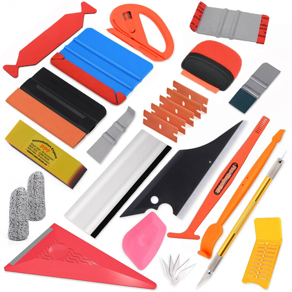 FOSHIO Carbon Fiber Vinyl Film Wrapping Car Accessories Tools Set Window Tint Sticker Cutter Wrap Scraper Squeegee Cleaning Tool