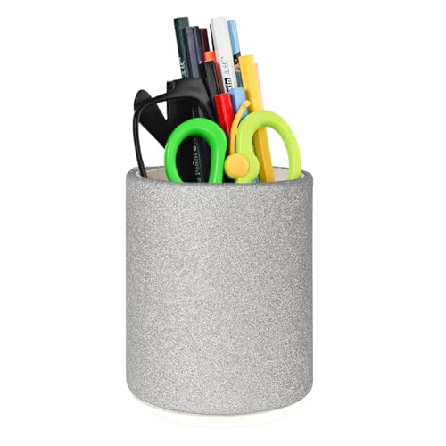 Fosinz Portapenne rotondo in pelle PU, portapenne per penne, tazze, pennelli da trucco, supporto da scrivania, organizer per cancelleria, per casa, ufficio, scuola (argento)