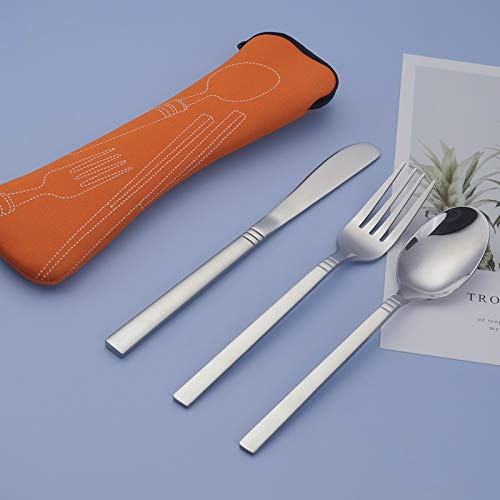 Fosly - Set di Posate da Campeggio in Acciaio Inox con Custodia, 3 Pezzi, Arancione