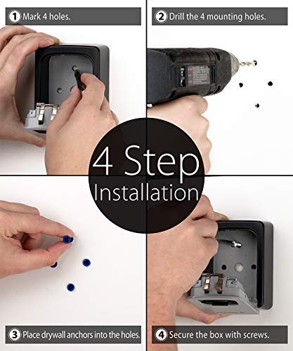 [L'installazione è un gioco da ragazzi] La cassetta di sicurezza della chiave viene fornita con tutto l'hardware necessario per l'installazione. È possibile montare la scatola sulla parete o sullo spioncino. Basta praticare i fori di montaggio e avvitare la scatola alla parete, e si è pronti a godere della comodità e della sicurezza che fornisce.
