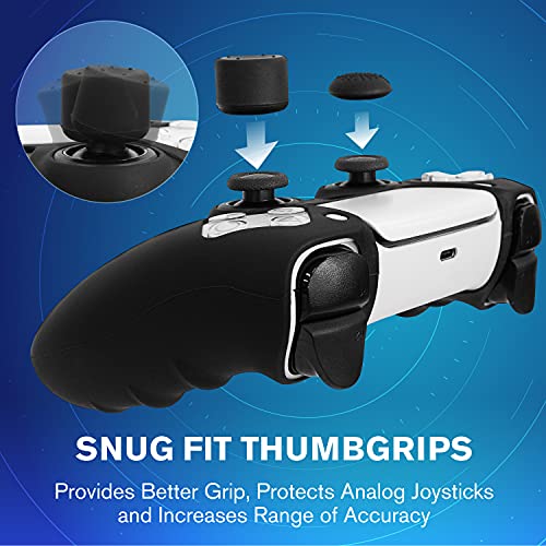 Fosmon Custodia protettiva in silicone antiscivolo compatibile con controller Sony PS5 DualSense (2 pezzi - nero), anti-sudore custodia con 8 x Pro tappi da pollice