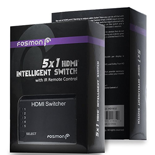 Fosmon HD8093EU [Supporti 3D, Audio HD, up to 1080p] 5-Port HDMI Switch, Intelligent Mini HDMI Commutatore | Switcher | Splitter con IR Telecomando e AC Power Adapter