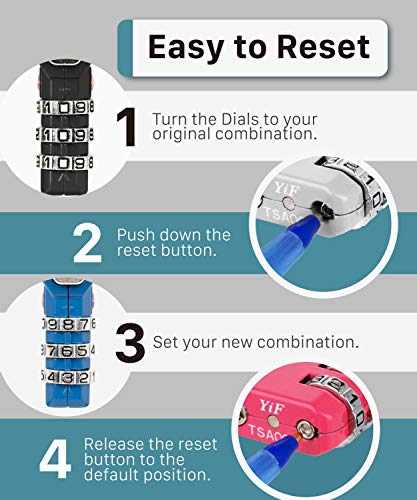 [FACILE DA LEGGERE E IMPOSTARE I DIAL.] I numeri sui quadranti sono facili da leggere senza la lettura degli occhiali e non dovrai mai preoccuparti di perdere la chiave del lucchetto. È possibile ripristinare facilmente la combinazione con una penna o un altro strumento, senza preoccupazioni per il ripristino accidentale.