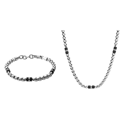 Fossil Bracciale da Uomo, JF03313040, Black Marble + Collane Uomini, Acciaio Inossidabile