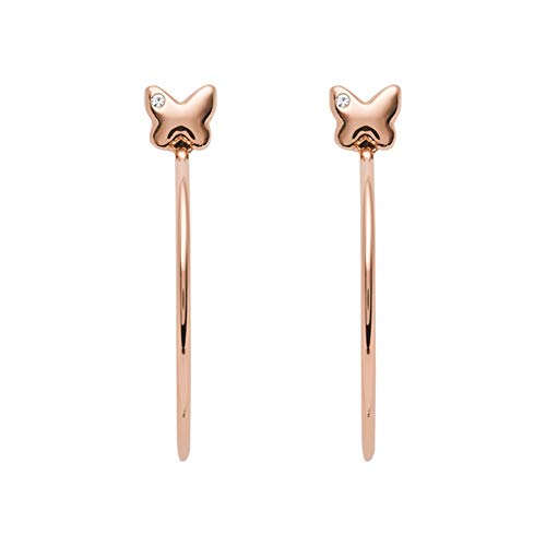 Questi cerchi presentano un dettaglio a farfalla con accenti sfavillanti in cristallo, acciaio inossidabile color oro rosa e chiusure a palo.