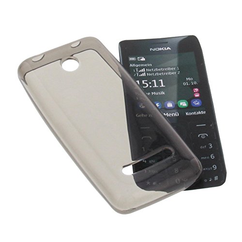 Foto-kontor Custodia Compatibile con cellulari Nokia Asha 206 Cover in Gomma TPU di Colore Grigio