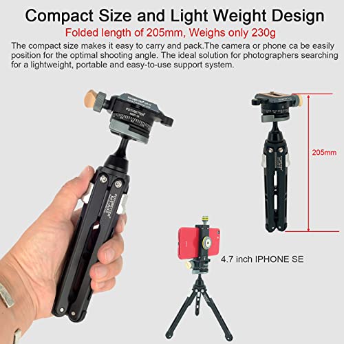 FOTOBETTER Macro Treppiedi da Tavolo Portatile Compatto 15cm con Panoramica a 360° Testa a Sfera e Piastra a Sgancio Rapido per Videocamere/Vlog/Fotocamera DSLR/ telefono/Gopro/DJI