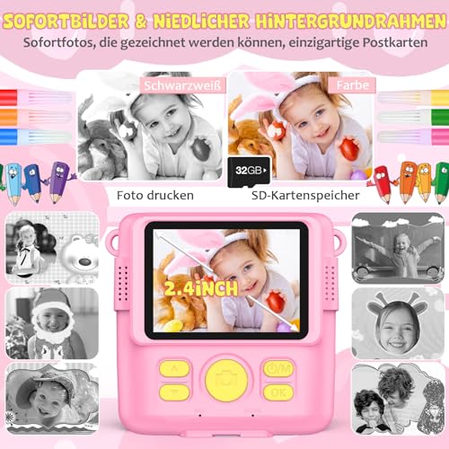 Fotocamera istantanea per bambini: realizzata in materiale ABS di alta qualità, resistente agli urti, atossico ed ecologico, ottimo regalo per i bambini. Il rotolo di carta termica in dotazione consente fino a 80 stampe ed è ricaricabile. Fotocamera digitale per bambini dai 3 ai 12 anni. Si tratta di una categoria giocattolo per bambini (senza fotocamera di fascia alta)