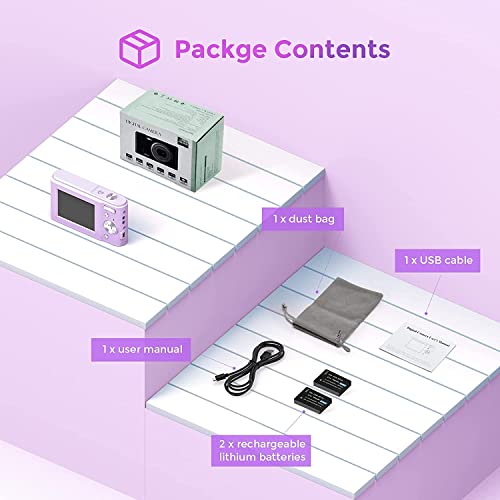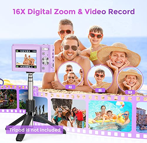 Fotocamera Digitale Compatta Fotocamera da 36 Megapixel da 2,4 Pollici con Zoom Digitale 16X, Videocamera FHD 1080P per Bambini, Adulti, Principianti (Purple)