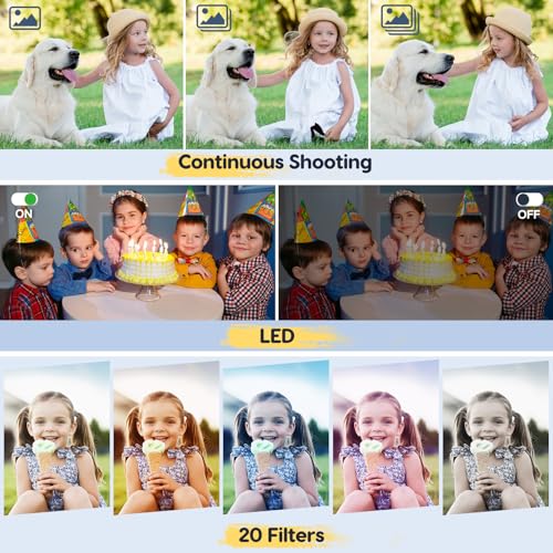 【FHD 1080P & 44MP Macchina Fotografica】Risoluzione video Ultra HD 1080P e risoluzione immagine 44MP a Cattura i momenti più emozionanti in una migliore qualità di immagine o video. Bambini e studenti possono utilizzare liberamente la fotocamera compatta per registrare momenti divertenti con gli amici a scuola, i membri della famiglia.