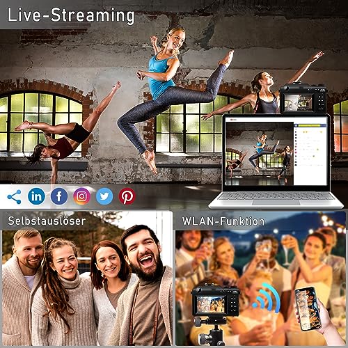 【4K & 48MP High Resolution, 16X】: la nostra fotocamera digitale è dotata di video 4K e 48MP funzione fotografica. La fotocamera fornisce loro immagini molto dettagliate e realistiche. È dotato di una vasta gamma di funzioni tra cui zoom digitale 16x, registrazione in loop, scatti continui, rallentatore e autoscatto.