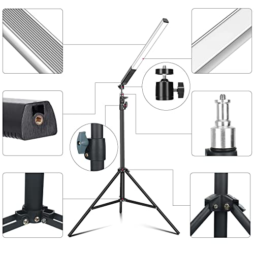【Bacchetta luminosa portatile con supporto per treppiede】 La bacchetta luminosa a LED è facile da riempire con la luce a mano o sul treppiede/supporto, viene fornita con un supporto per treppiede, che pesa solo 1,2 kg/2,6 libbre, realizzato in lega di alluminio di alta qualità che rende la struttura più stabile, robusto, durevole e leggero. Altezza regolabile da 0,75 m/29 pollici a 2,25 m/81 pollici.