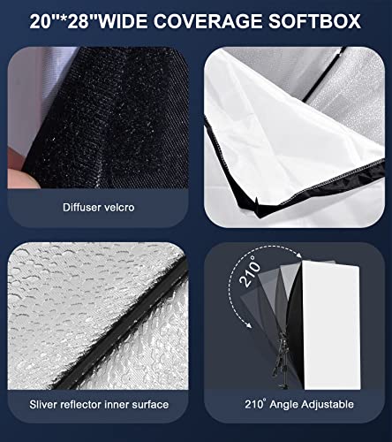 【Softbox 50 x 70cm 】 È realizzato in materiale di alta qualità, che può ottenere un buon effetto riflettente. Il lato interno argentato può ridurre al minimo la perdita di luce e mantenere un angolo diffuso perfetto. La copertina morbida bianca rafforza l'effetto della luce soffusa, può anche impedire l'acqua nella ripresa di illuminazione fotografica esterna.