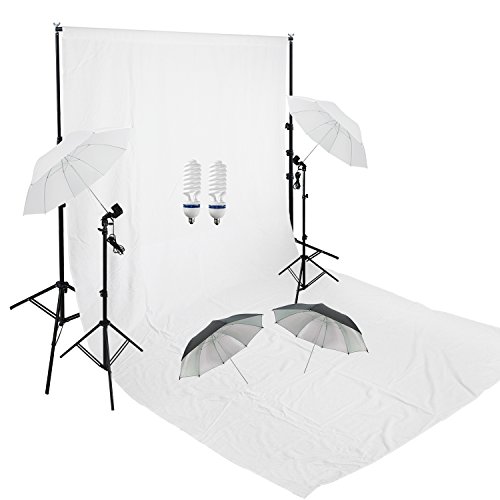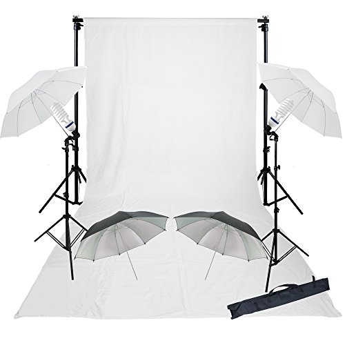 PMS Fotografico Studio Continua Ombrello Nero Argento e Bianco Kit luci + 6 x 3m Bianco Schermo mussol Sfondo +3m x 2.8m Kit Supporto Fondale Background con Bulbi da a Luce Continua 5500K