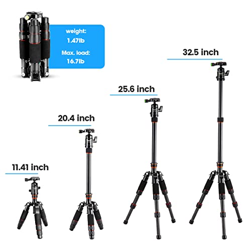 Fotopro Fibra di Carbonio Mini Treppiedi con Monopiede Pieghevole Dimensione 17,5 cm Portatile Viaggio Treppiede per Fotocamera Testa a Sfera 360 per DSLR Canon Nikon Sony Max Carica Fino a 12 kg