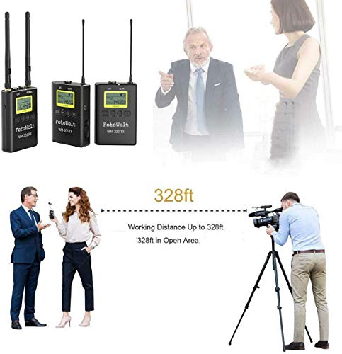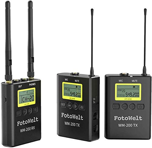 Aggiornato: FotoWelt WM-200 è un sistema di microfoni wireless UHF a doppio canale, può utilizzare due trasmettitori simultaneamente, un processore di ricezione DSP a doppia conversione per una forte capacità di interferenza con lo specchio.