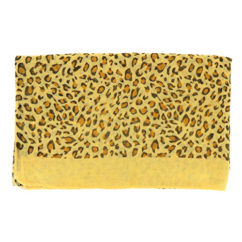 Foulard Donna Leopardo Giallo stampato Animali 30% Cotone 70% Viscosa - Maxi Sciarpa Leggera Lunga e Rettangolare 190cm x 70cm - Fular Leopardato Originale Moderno e alla Moda