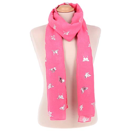 Foulard Donna Rosa stampato Farfalla Argento 30% Cotone 70% Viscosa - Maxi Sciarpa Leggera Lunga e Rettangolare 180cm x 70cm - Fular Originale Brillante Moderno e alla Moda - Boho Chic