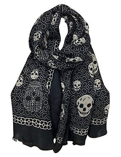 Foulard, sciarpa fazzoletto stampata con teschio, 180 x 100 cm, sfondo nero Venditore francese.