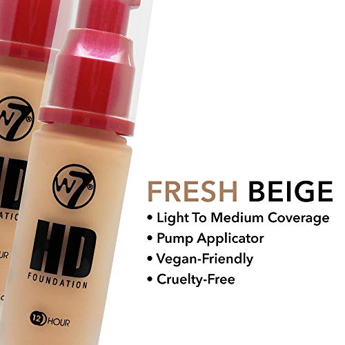 W7 | Foundation | HD Foundation - Fresh Beige | Light to Medium Coverage, Lightweight and Long Lasting