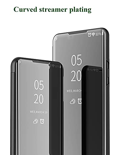 ★[MATERIALE DI ALTA QUALITÀ] - La custodia per specchi con placcatura galvanica realizzata in PC e pelle PU, la copertina anteriore e posteriore è in PC, la parte di collegamento è in pelle PU premium. Clear View Flip Cover consente di visualizzare la data, l'ora e il meteo attraverso la finestra del display. Supporta la funzione sveglia/sonno intelligente.