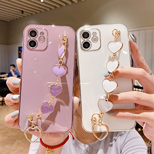 FOURTOC Cover Placcatura per Telefono con Cinturino per iPhone 12 12 PRO 12 PRO Max Custodia in Silicone per Braccialetto 3D Love,Bianca,12 PRO Max