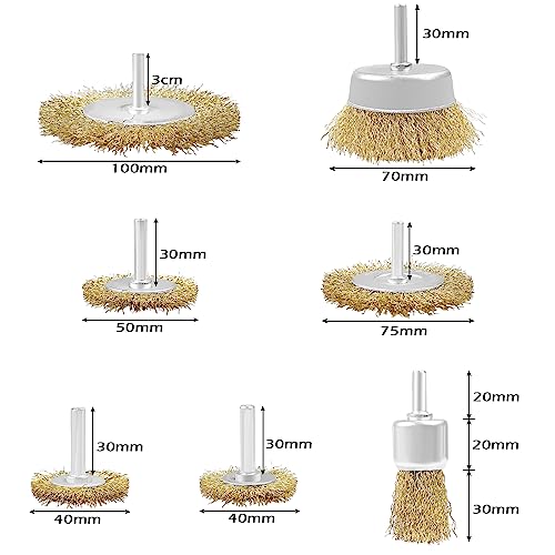 Fousenuk 7 Pezzi Spazzole Metalliche per Trapano, Spazzola di Ferro con Codolo da 1/4 di, Spazzola Ottone Metallica Acciaio Lucidatura Pulito per la Rimozione di Ruggine/Corrosione/Vernice