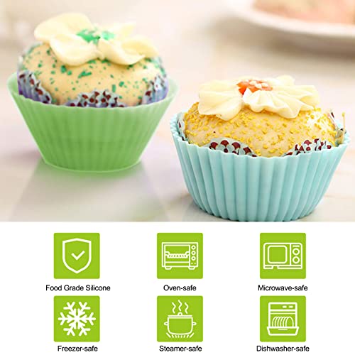 【Buona qualità】 Gli stampi per cupcake sono realizzati in silicone alimentare, atossico e insapore, morbido, non facile da deformare, privo di BPA, resistente al calore fino a 230 gradi Celsius e riutilizzabile migliaia di volte.
