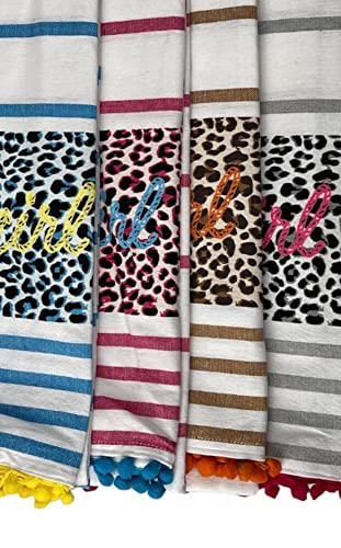 Fouta Jungle Stripe 100% Cotone Telo Mare con Pon Pon Asciugamano Pareo da Spiaggia (Bianco-Grigio)