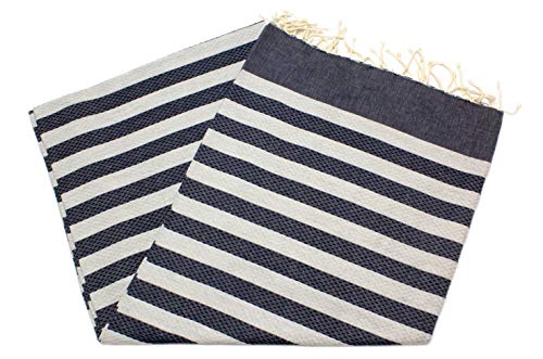 ANNA ANIQ Fouta Telo Mare Telo Sauna XXL Extra Grande 100 x 200 cm - 100% Cotone Pettinato, Telo da Bagno, Coperta da Picnic, Yoga, Pestemal, Telo Mare Dunkelblau-Hellgrau