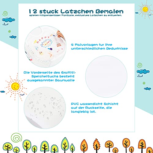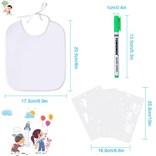Fouvin Bavaglino da colorare, set di bavaglini in cotone su entrambi i lati, bavaglino bianco con 12 matite in tessuto, 4 stencil - regalo per baby shower party per bambini, bianco, 7.9in*6.9in