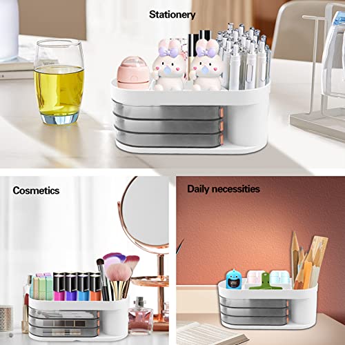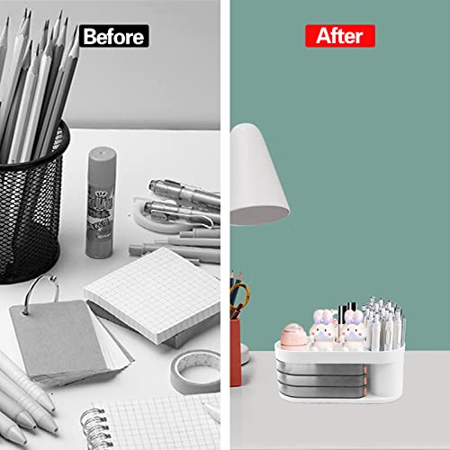 Fouvin Organizzatore da scrivania a 6 scomparti, multifunzione, con 3 cassetti, in plastica, per ufficio, casa, scuola, colore bianco