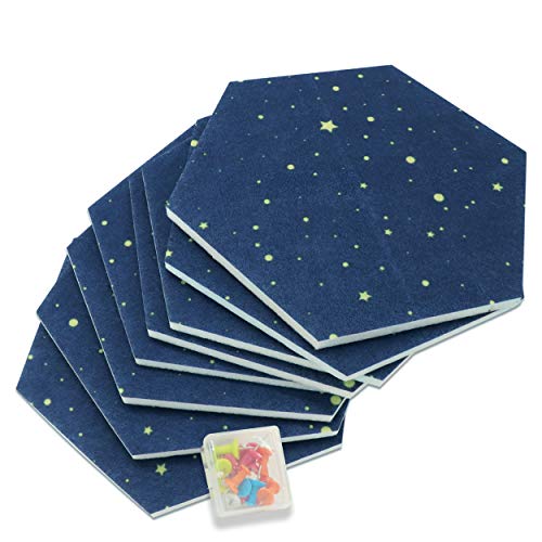 → Dimensioni delle lavagne in feltro: la confezione contiene 8 pannelli esagonali in feltro + 12 puntine a spinta;