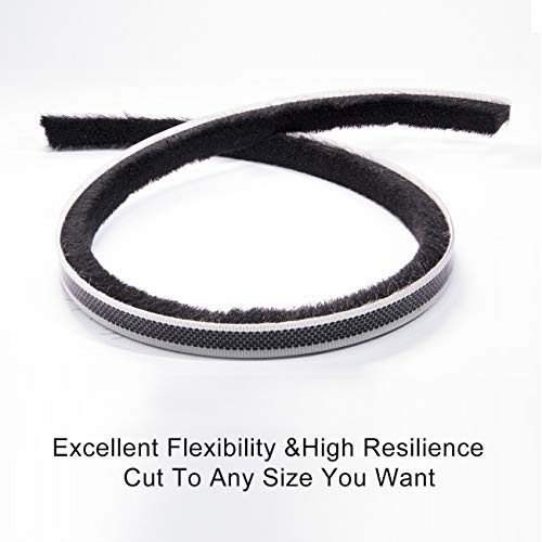 Fowong Guarnizione a spazzola autoadesiva, 4,9 m (lunghezza) x 9 mm (larghezza) x 5 mm (altezza), barriera per aria ad alta densità per porte scorrevoli finestre e armadi spazzola sigillante - Nero