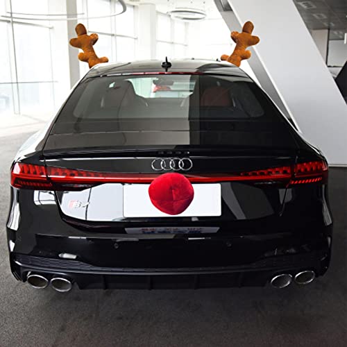 Fowybe Decorazioni Natalizie per Auto con Renne | Decorazioni per Auto di Natale Kit di Corna di Alce,Decorazioni per Auto di Natale Kit di Decorazioni per Auto per Il Tetto della Finestra