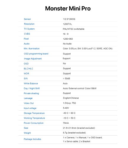 Foxeer 16:9 1200TVL Monster Mini PRO WDR FPV Camera 2.5mm Lens Audio Support 5-40v Input Voltage Red Pal for FPV Racing Quadcopter Drone
