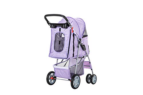 FoxHunter - Passeggino da viaggio viola con pois, per cane, cucciolo di cane, gatto, animale domestico, carrozzina da jogging con due ruote anteriori piroettanti e blocco ruote posteriore, rosso, cane, per cucciolo di cane, gatto, animale domestico, passeggino da, carrozzina da jogging con due ruote anteriori piroettanti e blocco ruote posteriore