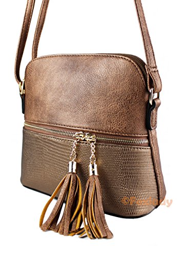 Foxlady - Borsa a tracolla da donna in pelle di serpente, con chiusura a cerniera, stile alla moda, con chiusura a zip, Coppertone, Small